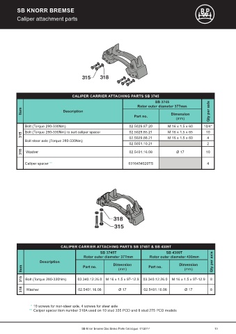 SB Knorr Bremse Disc Brake Parts Catalogue 01/2017 13