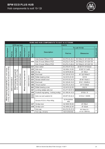 HUBS AND HUB COMPONENTS TO SUIT 10-12 TONNE